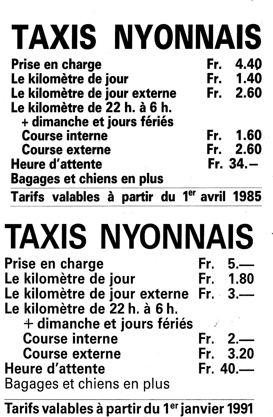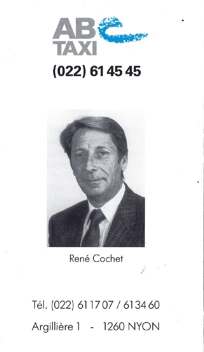 1966 : Fondation de l’entreprise individuelle par René Marcel Cochet à Nyon (12 décembre). Début de l’exploitation avec 3 véhicules, des Plymouth Valiant.